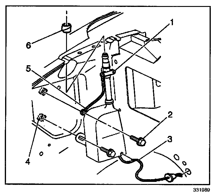 Tighten the bolts (2) retaining the antenna to the inner fender to 11 N.m (97 lb in).