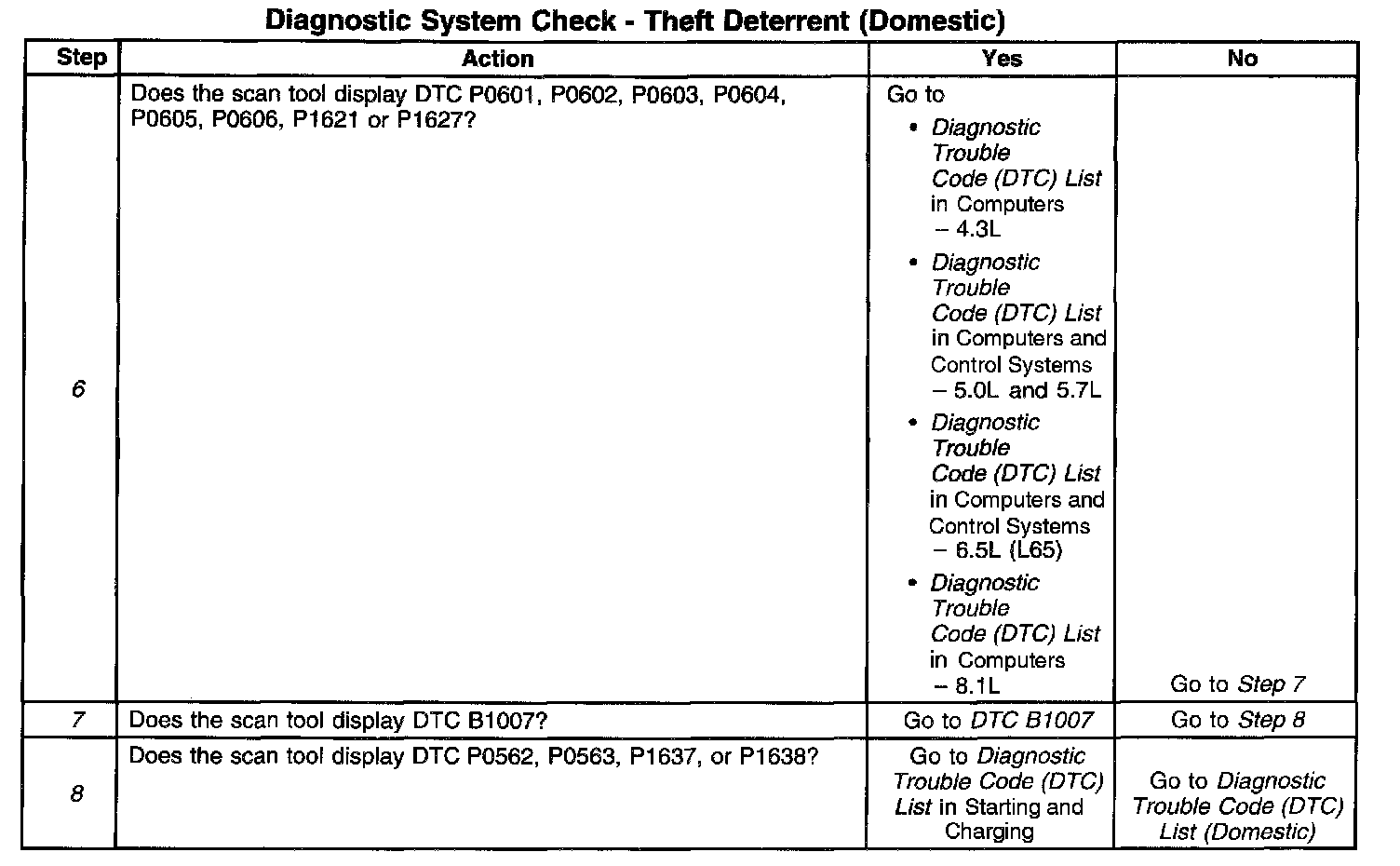 6. The presence of DTC P0601, P0602, P0603, P0604, P0605, P0606, P1621, or P1627 indicates an internal fault in the PCM.