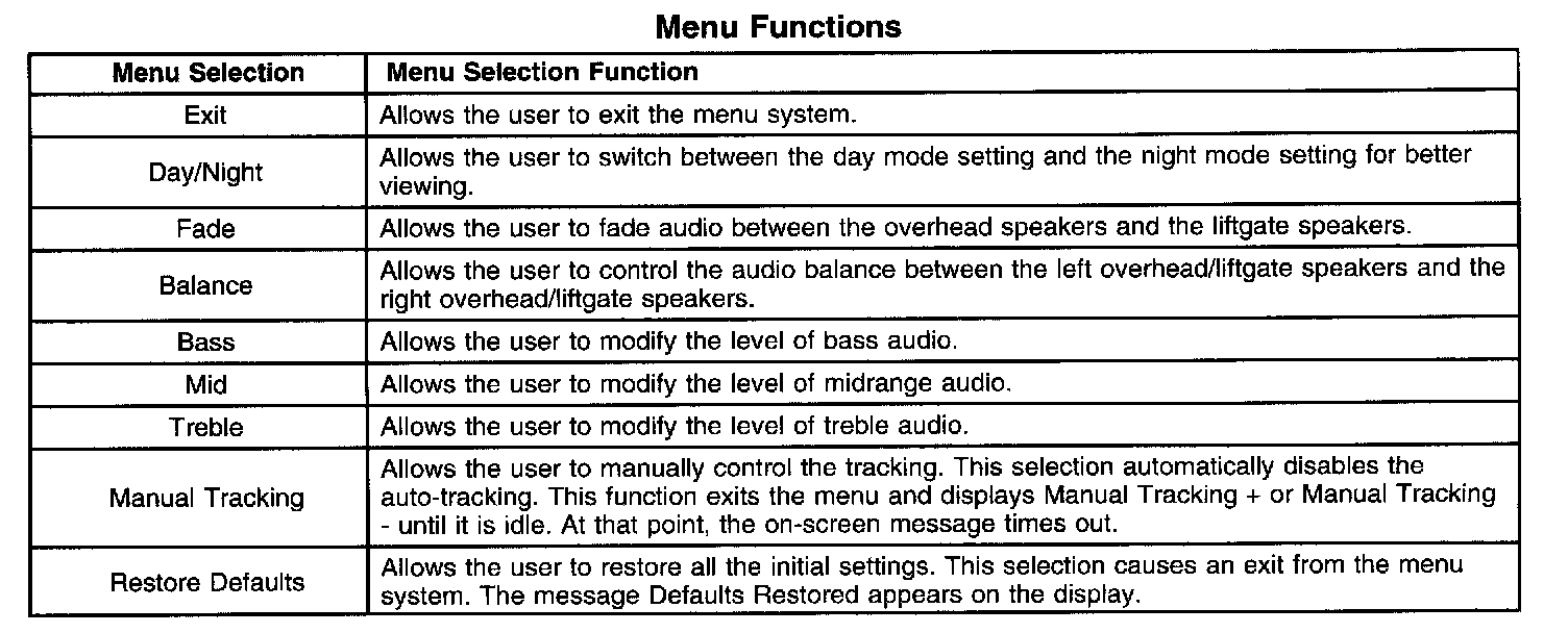 Menu Functions: