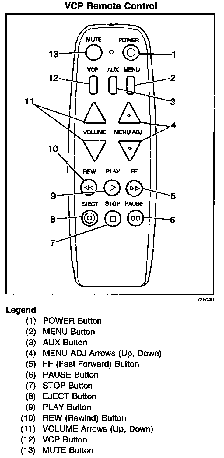 Simply aim the remote control at the video display and press the desired function button. Be sure the remote batteries are not discharged, which may reduce sensitivity to receive signals from the remote control. Objects blocking the remote control infrared beam may prevent operation of the VCP.