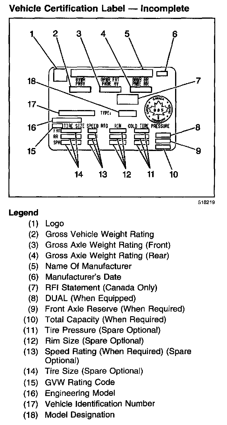 Vehicle Certification Label - Incomplete:
