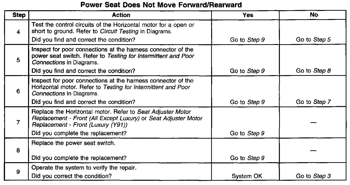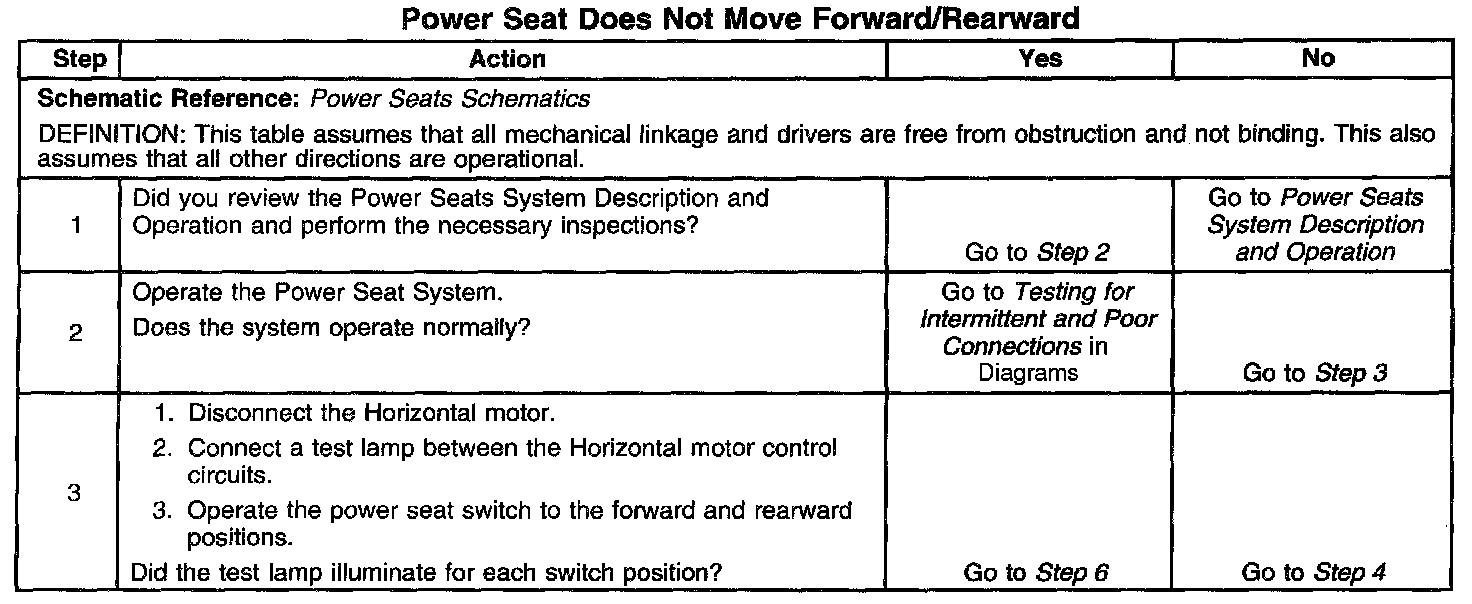Power Seat Does Not Move Forward/Rearward