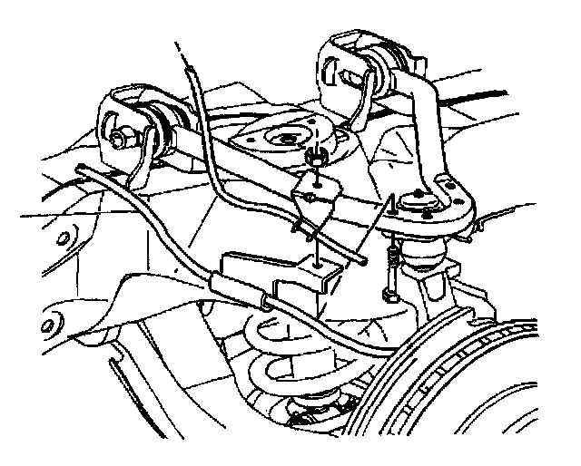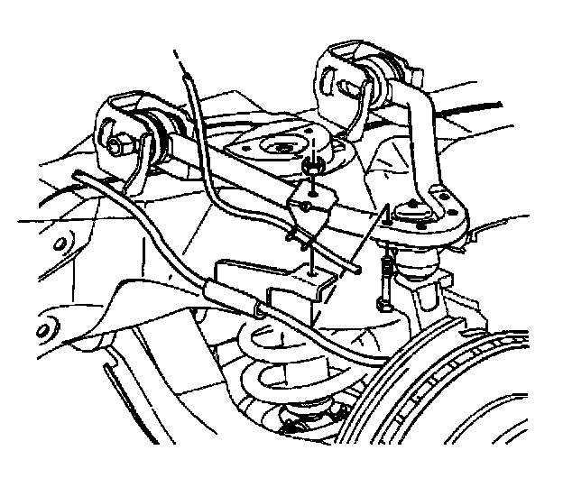 3. Install the front brake hose bracket and retaining bolt to the upper control arm.
