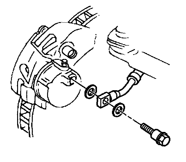 9. Remove and discard the 2 copper brake hose gaskets. These gaskets may be stuck to the brake caliper and/or the brake hose end.
