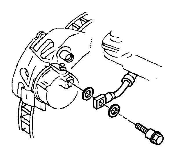 2. Install the brake hose to caliper bolt and NEW washers to the brake caliper.