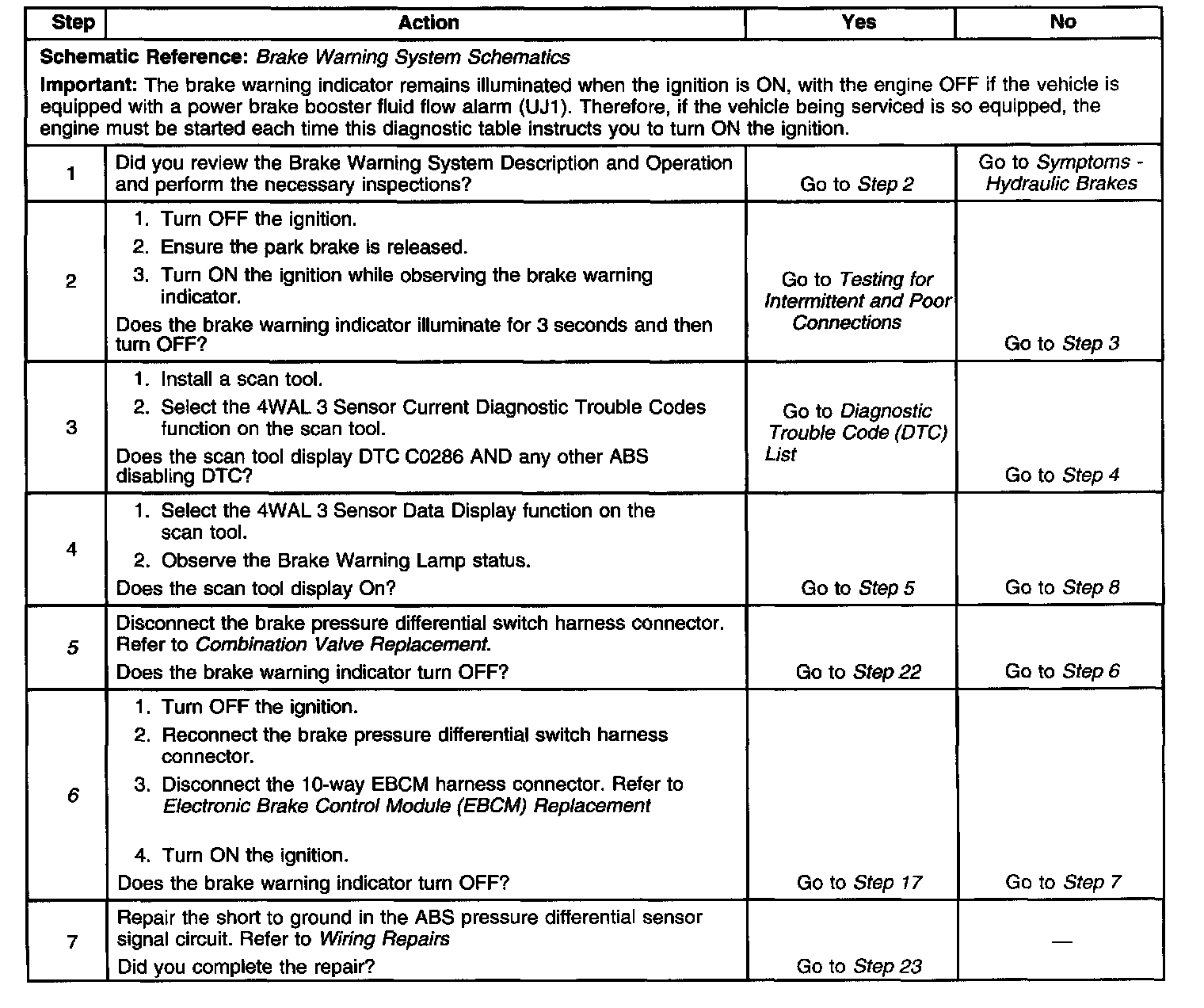 6. This step tests if the EBCM is applying ground to the brake warning indicator.