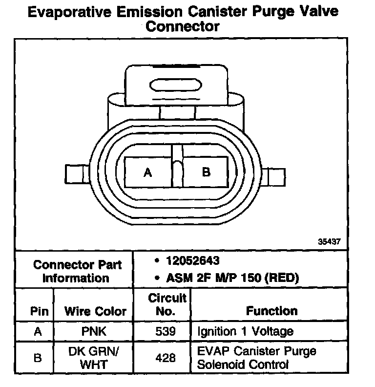 Evaporative Emission Canister Purge Valve Connector - Standard Models (Non-Alternative Fuels):