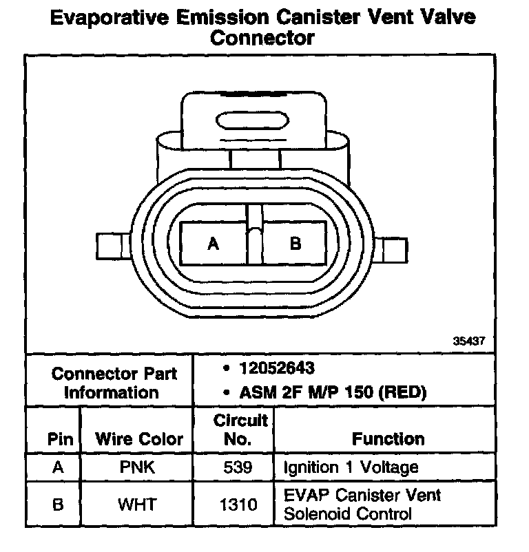 Evaporative Emission Canister Vent Valve Connector - Standard Models (Non-Alternative Fuels):