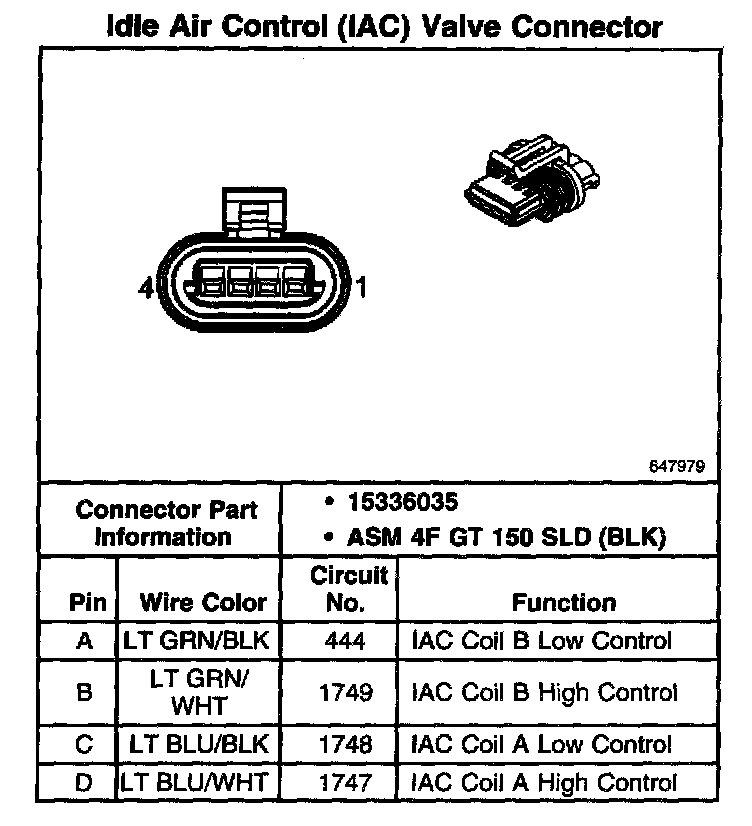 Idle Air Control (IAC) Valve Connector - Standard Models (Non-Alternative Fuels):