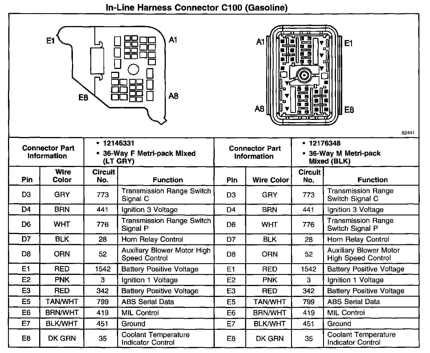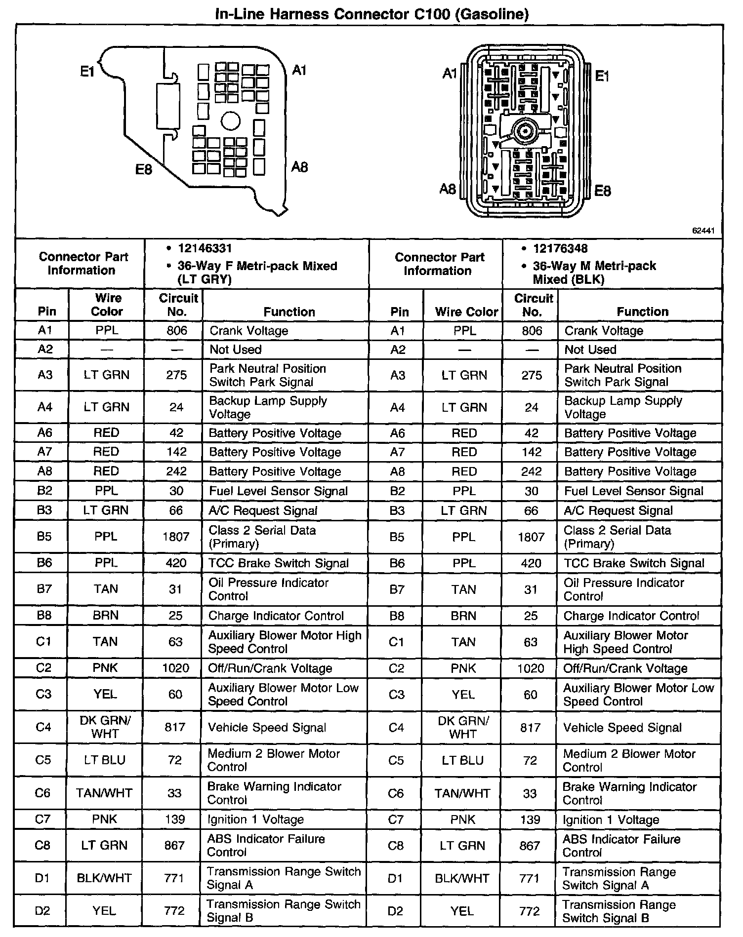 In-Line Harness Connector C100 (Part 2 Of 2):