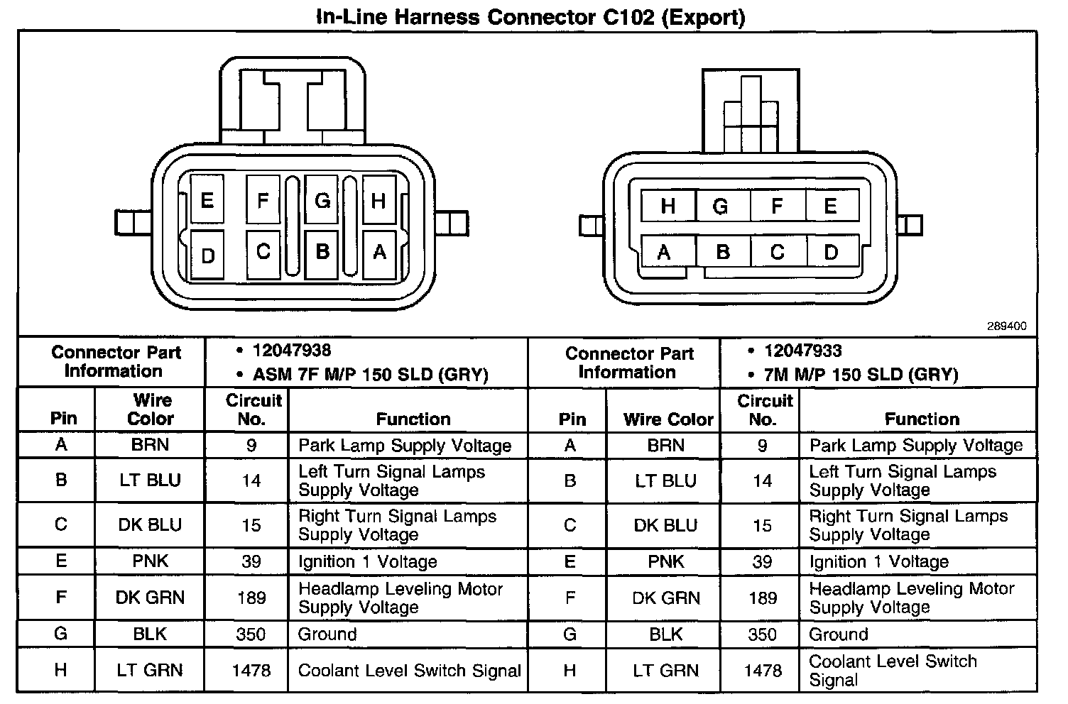 In-Line Harness Connector C102 (Export):