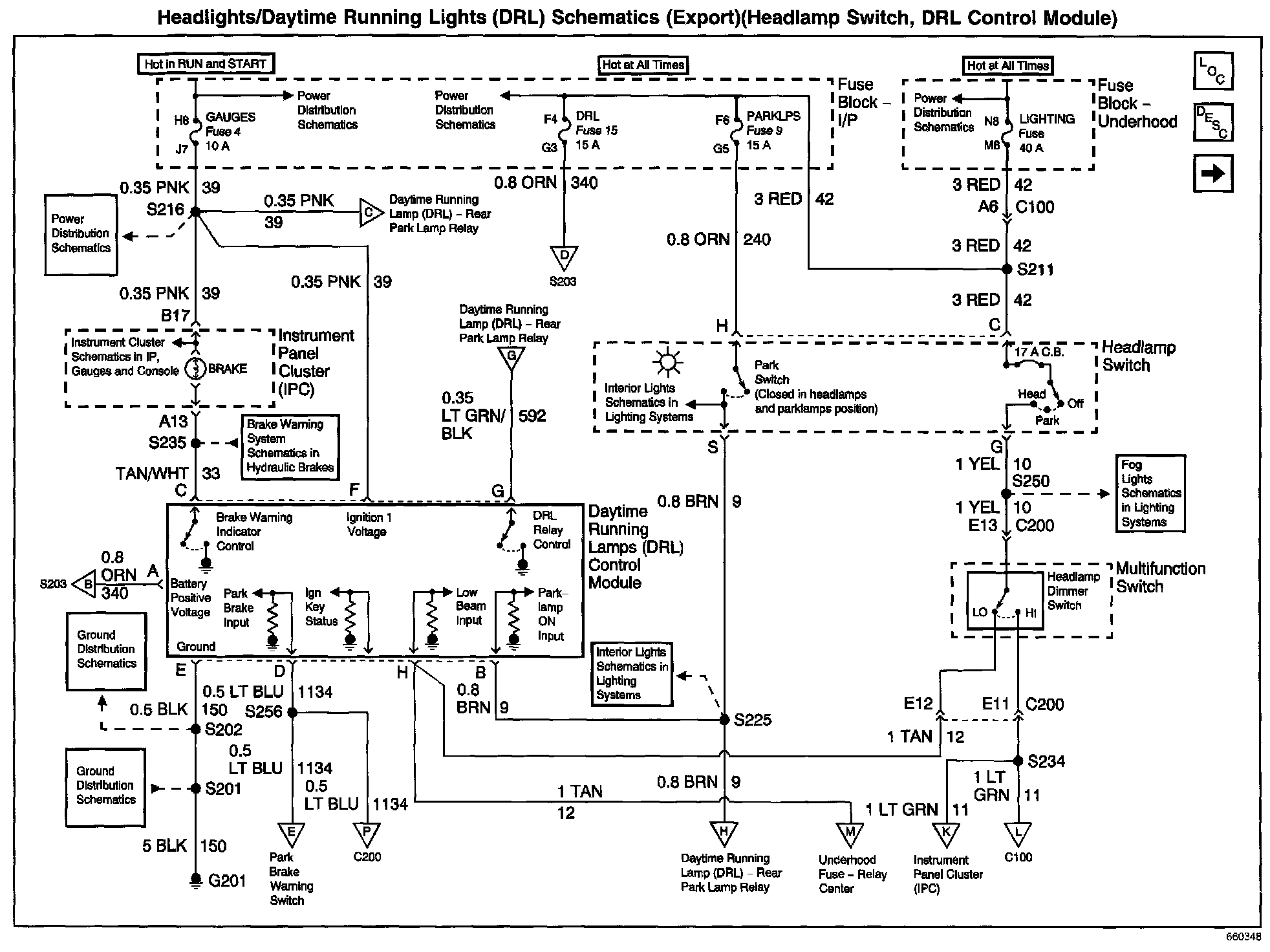 Headlights/Daytime Running Lights (DRL) Schematics: Export (Headlamp Switch, DRL Control Module):