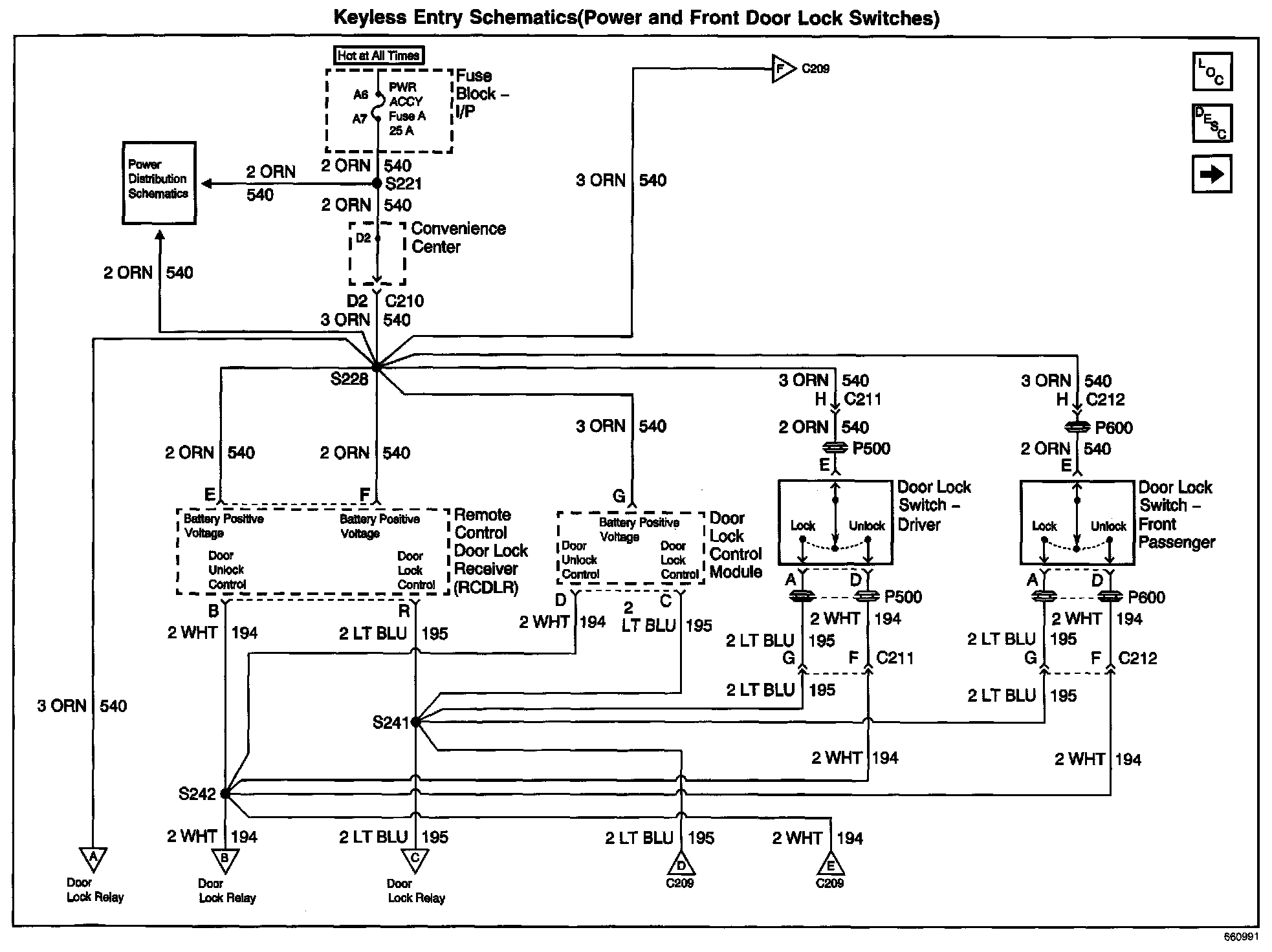 Keyless Entry Schematics: Power And Front Door Lock Switches: