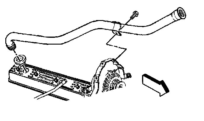 2. Remove the screw retaining the oil fill tube to the generator and drive belt tensioner bracket.