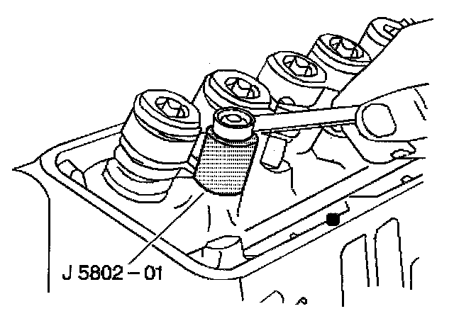 1. Place the J 5802-01 over the valve rocker arm ball stud to be removed.