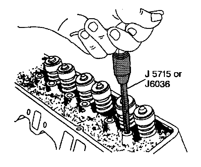 Use J 5715 for 0.0762 mm (0.003 inch) oversize valve rocker arm ball studs, or J 6036 for 0.3302 mm (0.013 inch) oversize valve rocker arm ball studs.
