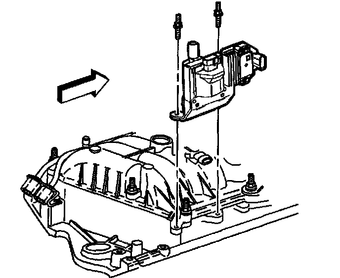 9. If reusing the fasteners, apply threadlock GM P/N 12345382 or equivalent to the threads of the Evaporative Emission (EVAP) canister purge solenoid valve studs.