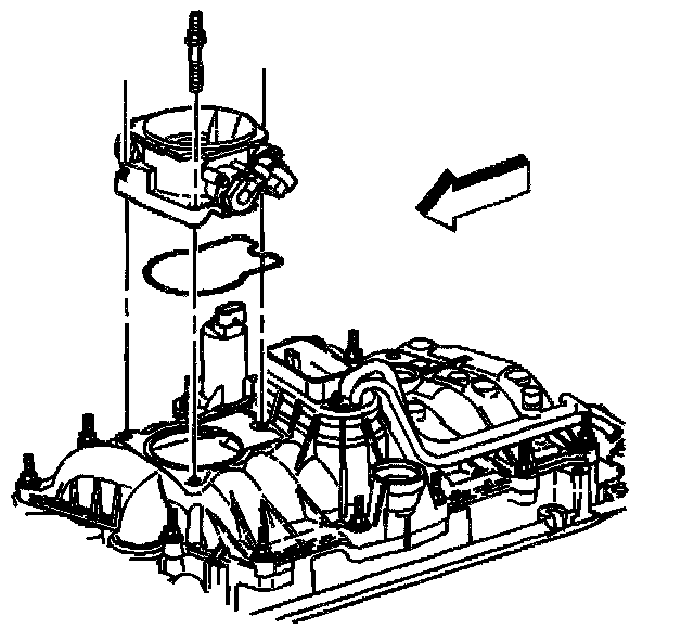 - Tighten the throttle body attaching studs to 9 Nm (80 inch lbs.).
