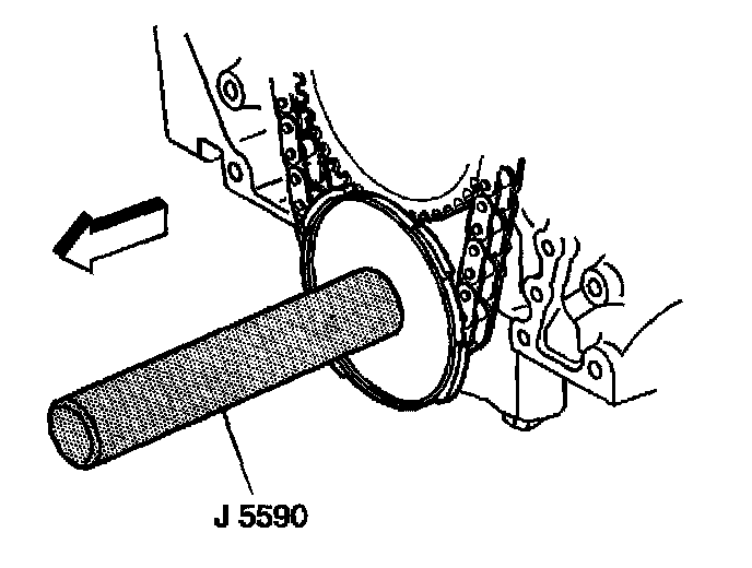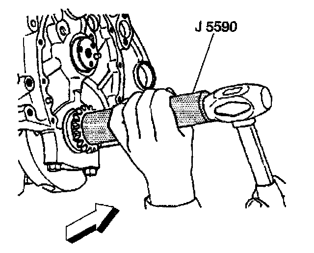3. Use the J 5590 in order to install the crankshaft sprocket.