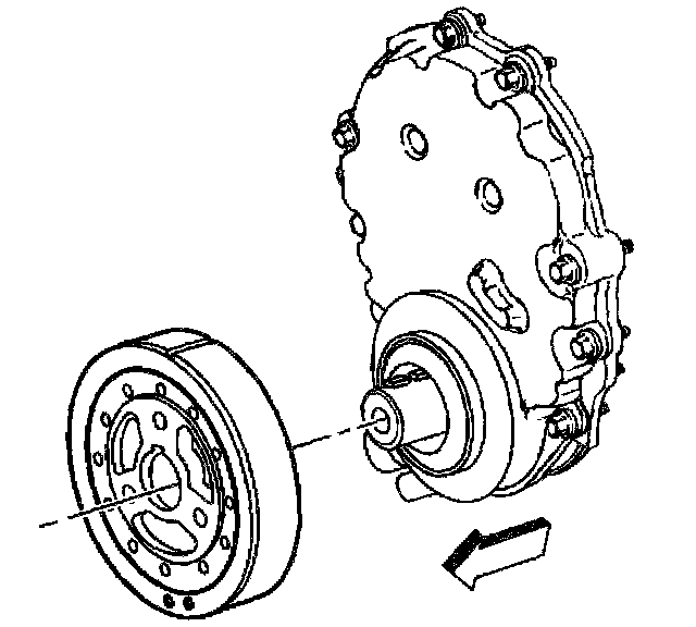 2. Apply a small amount of adhesive GM P/N 12346141 or equivalent onto the crankshaft balancer keyway in order to seal the crankshaft balancer keyway and crankshaft joint.