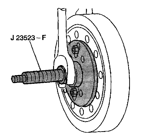 5. Use the J 23523-F in order to press the crankshaft balancer onto the crankshaft.