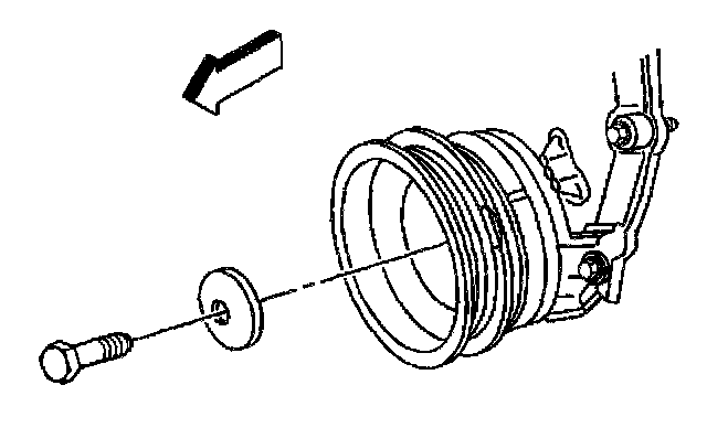 8. Ensure that the crown of the crankshaft balancer washer (2) is faced away from the engine.