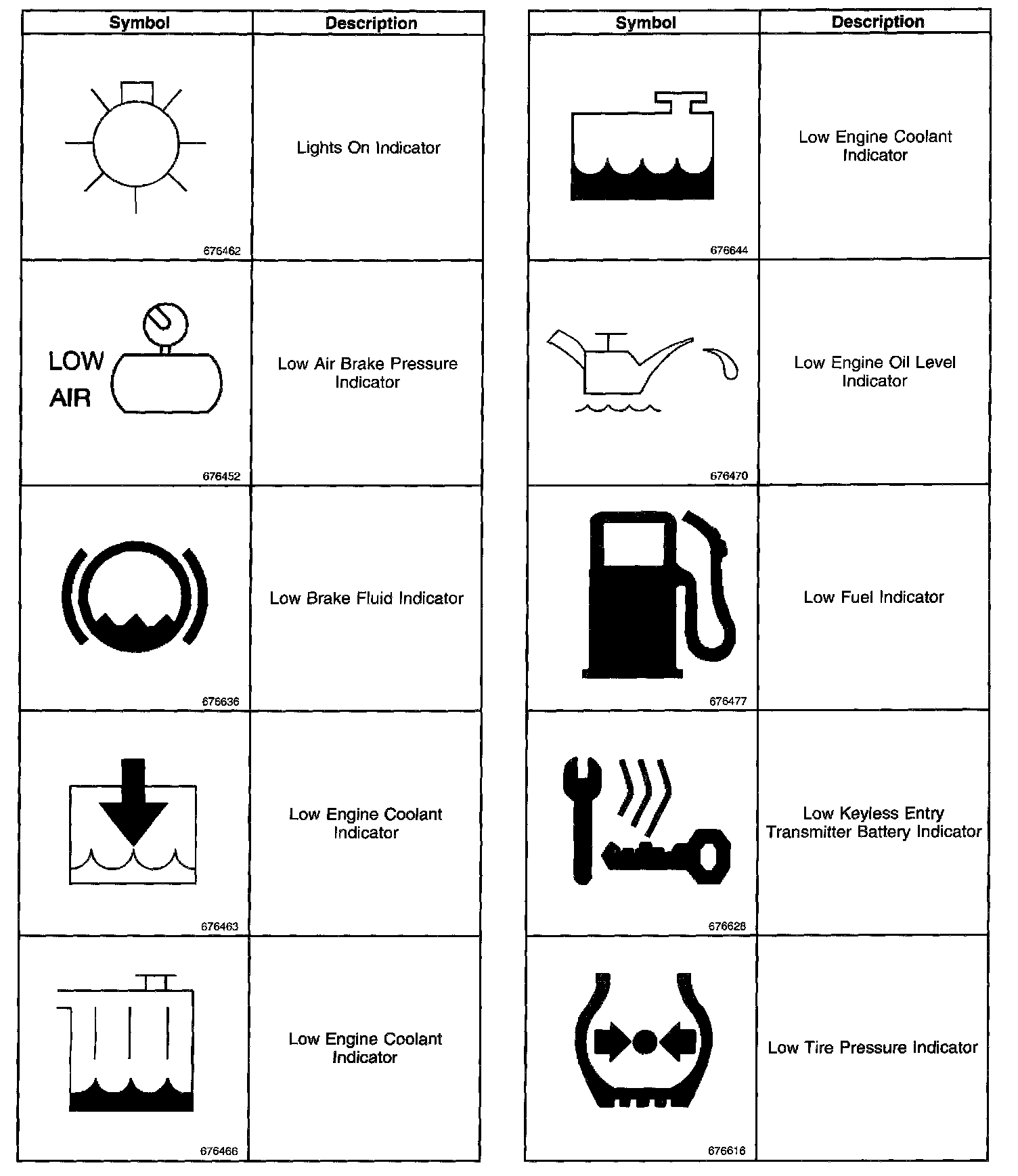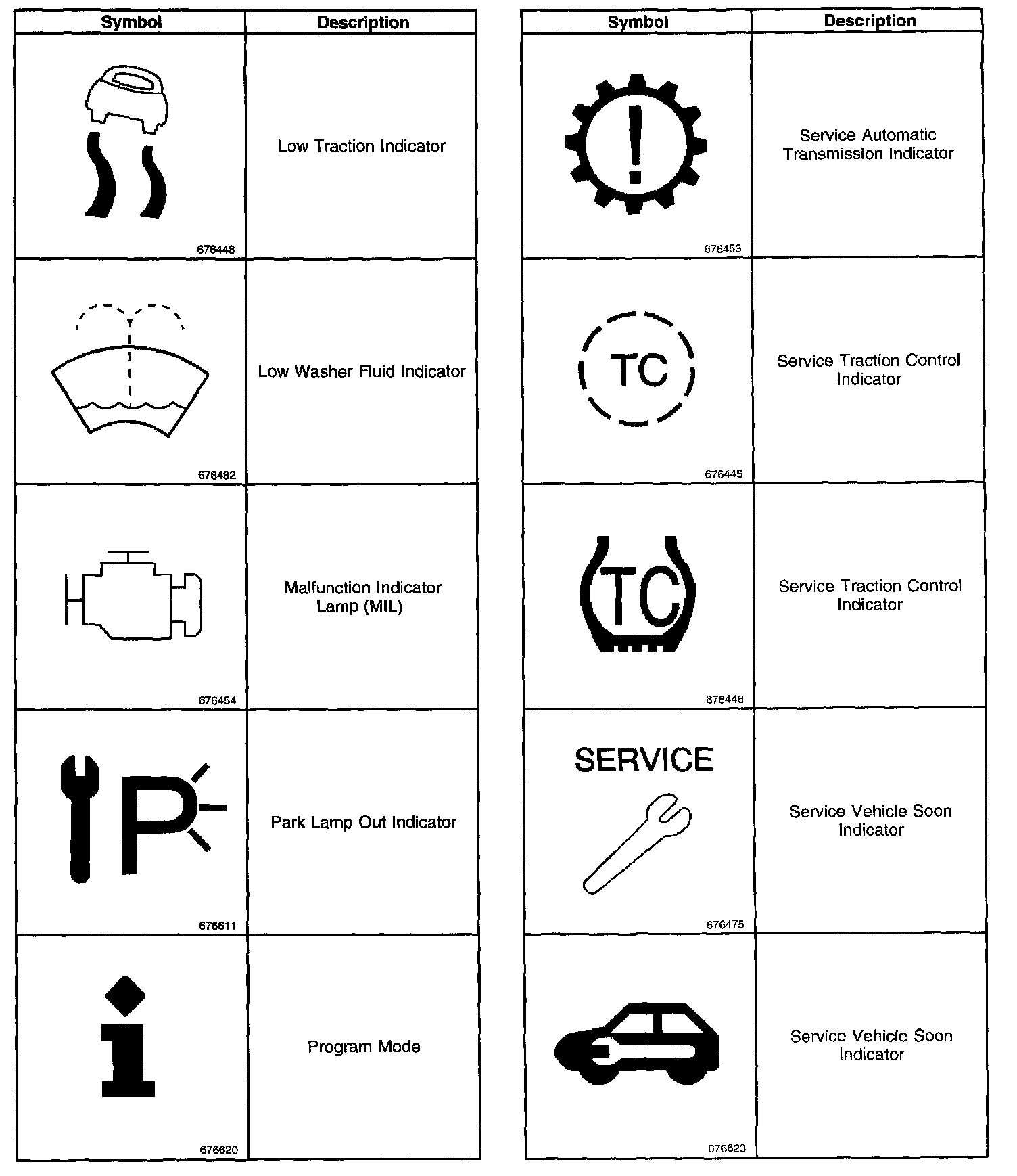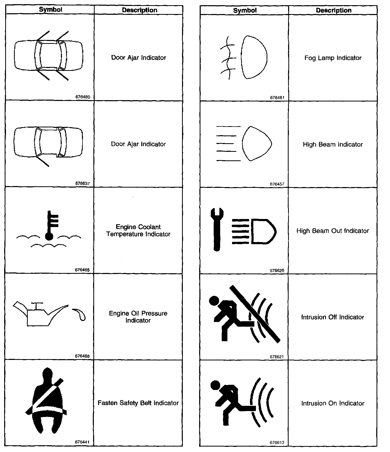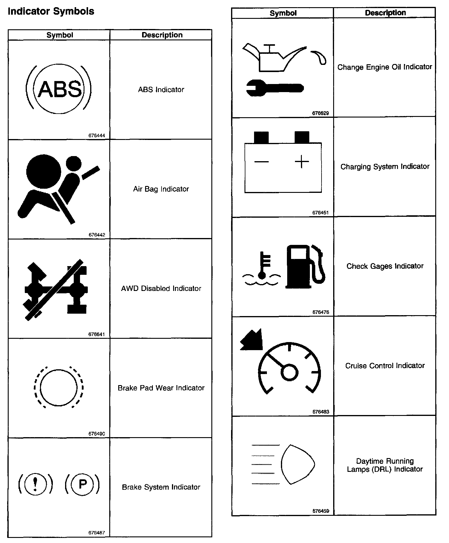 Instrument Panel, Gauges and Warning Indicators: Application and ID