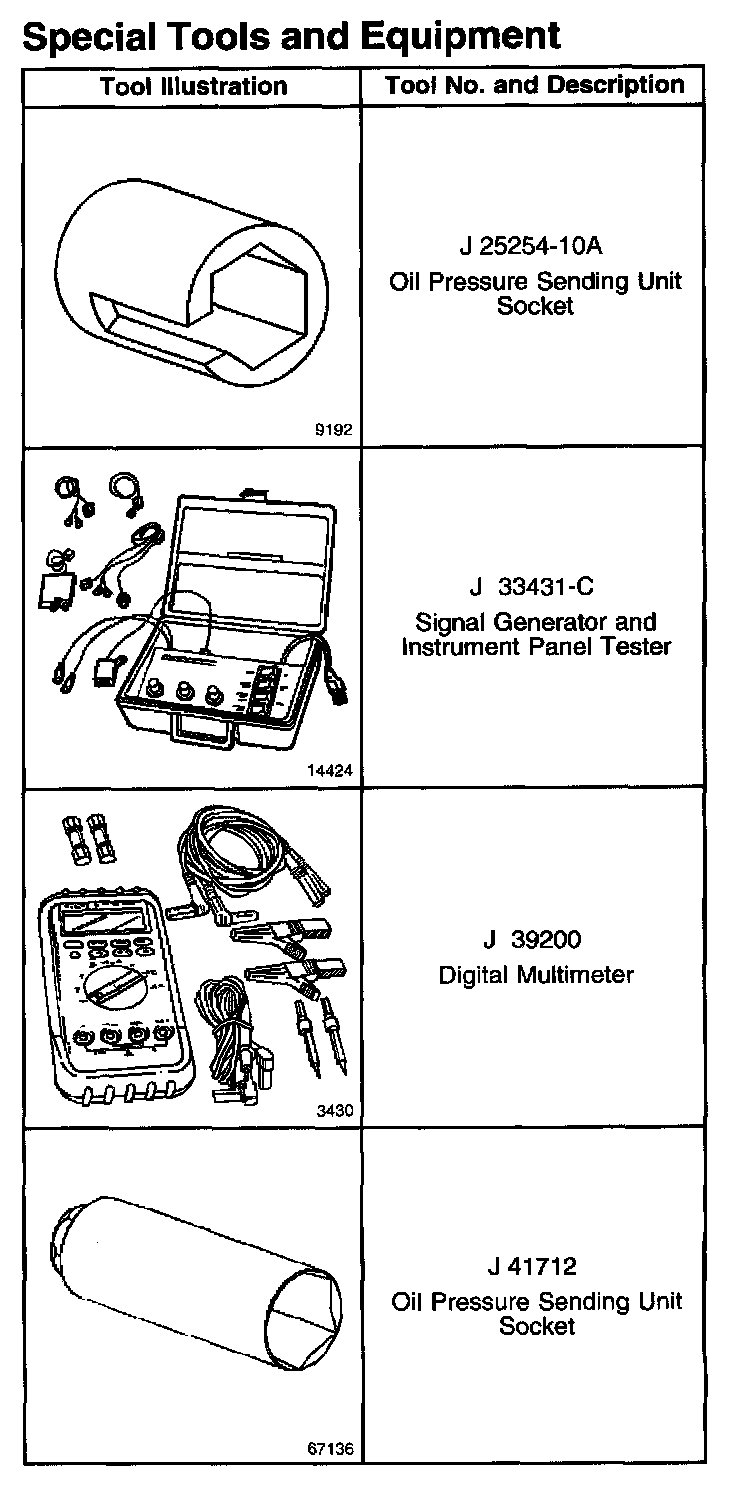 Instrument Panel, Gauges and Warning Indicators: Tools and Equipment