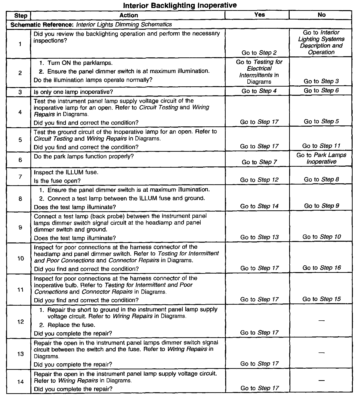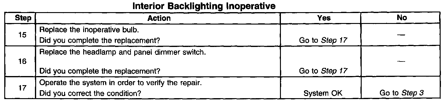Interior Backlighting Inoperative