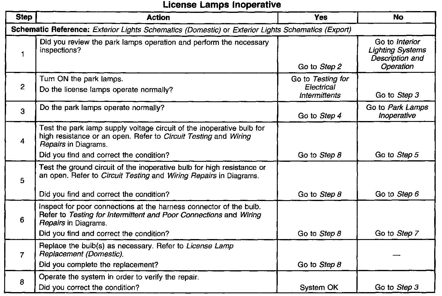 License Lamps Inoperative