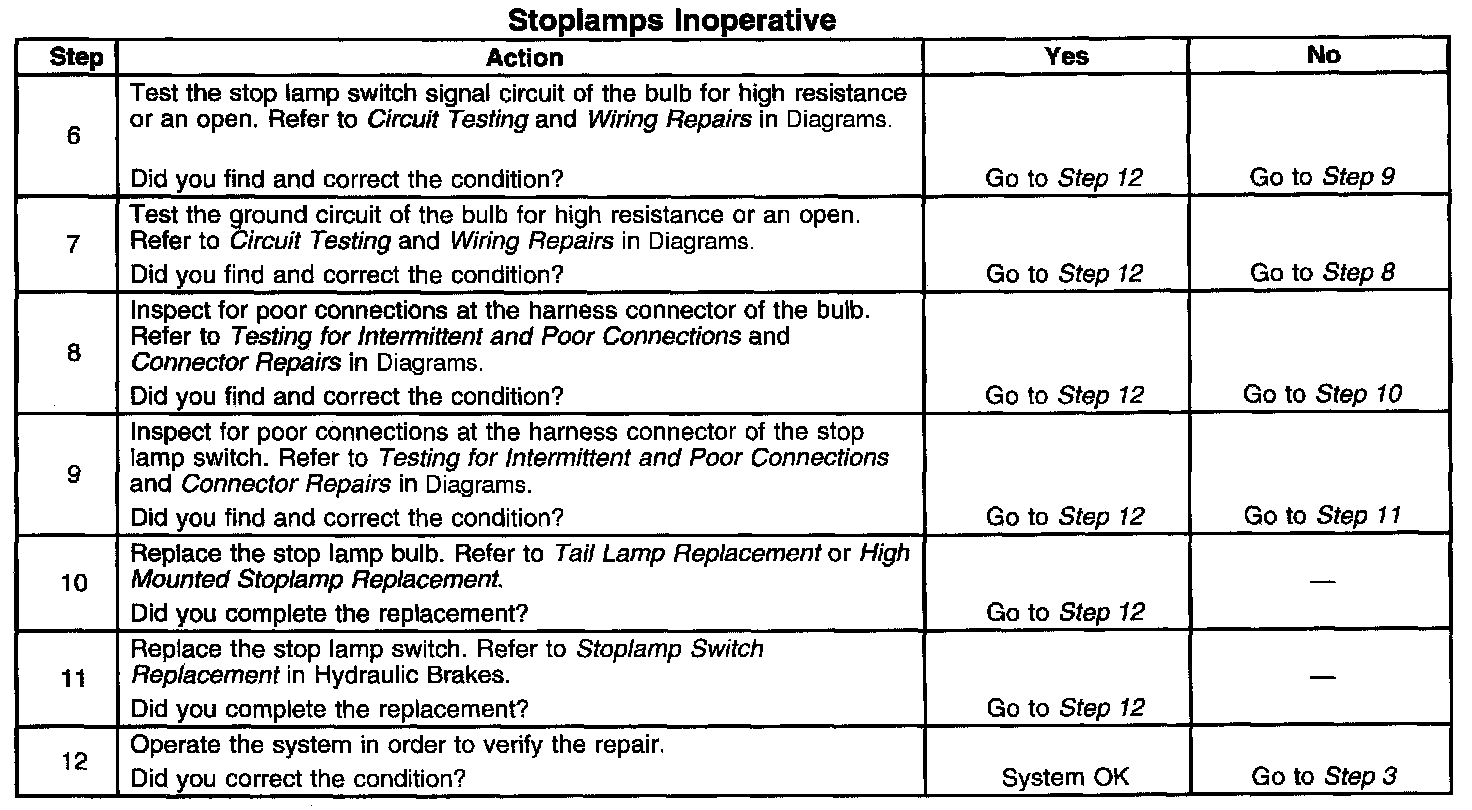 Stoplamps Inoperative