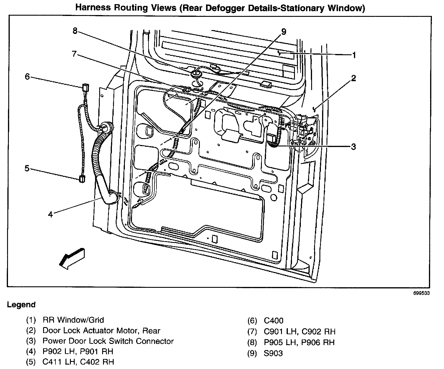Harness Routing Views (Rear Defogger Details-Stationary Window):
