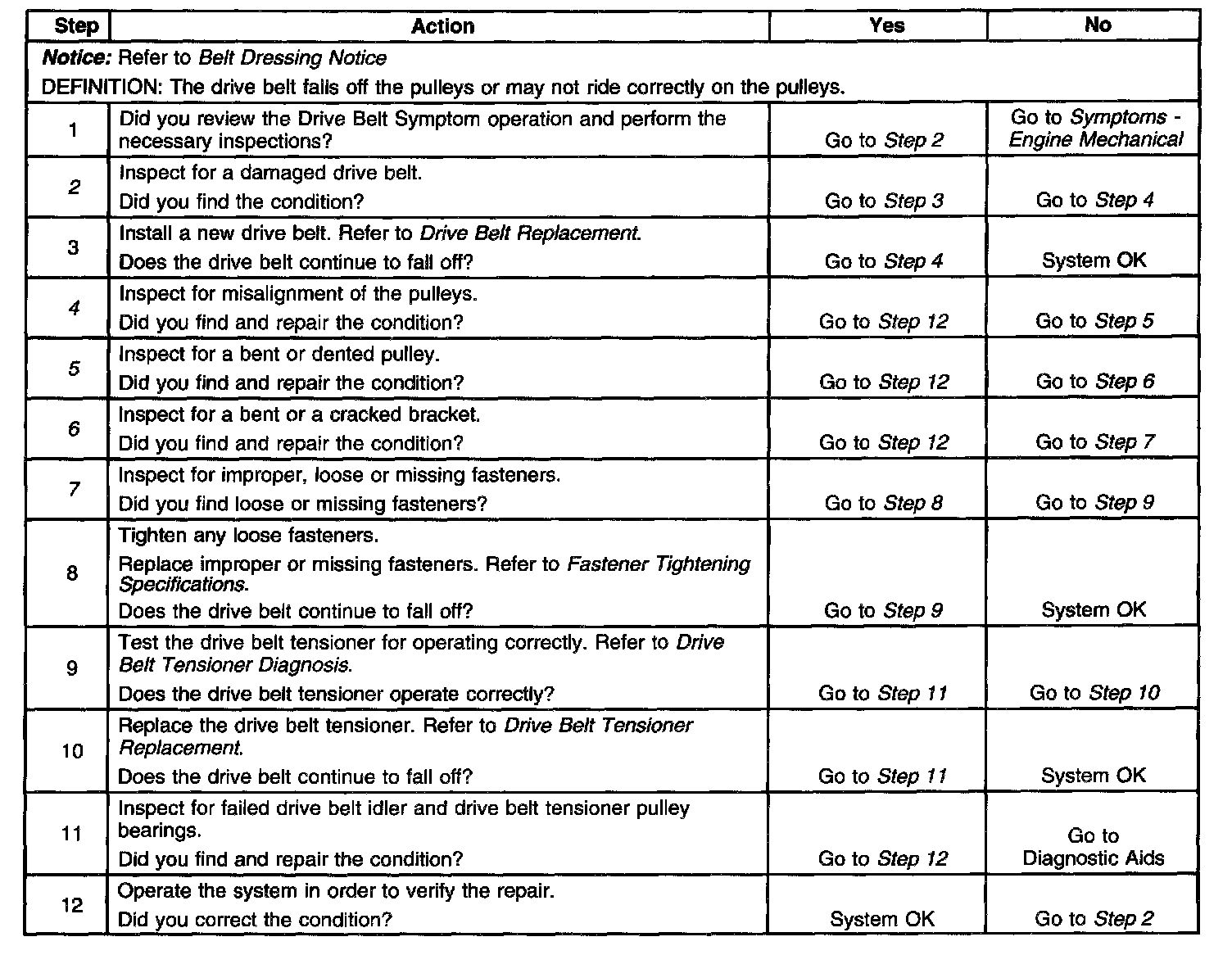 Drive Belt Falls Off DiagnosisDiagnostic Aids