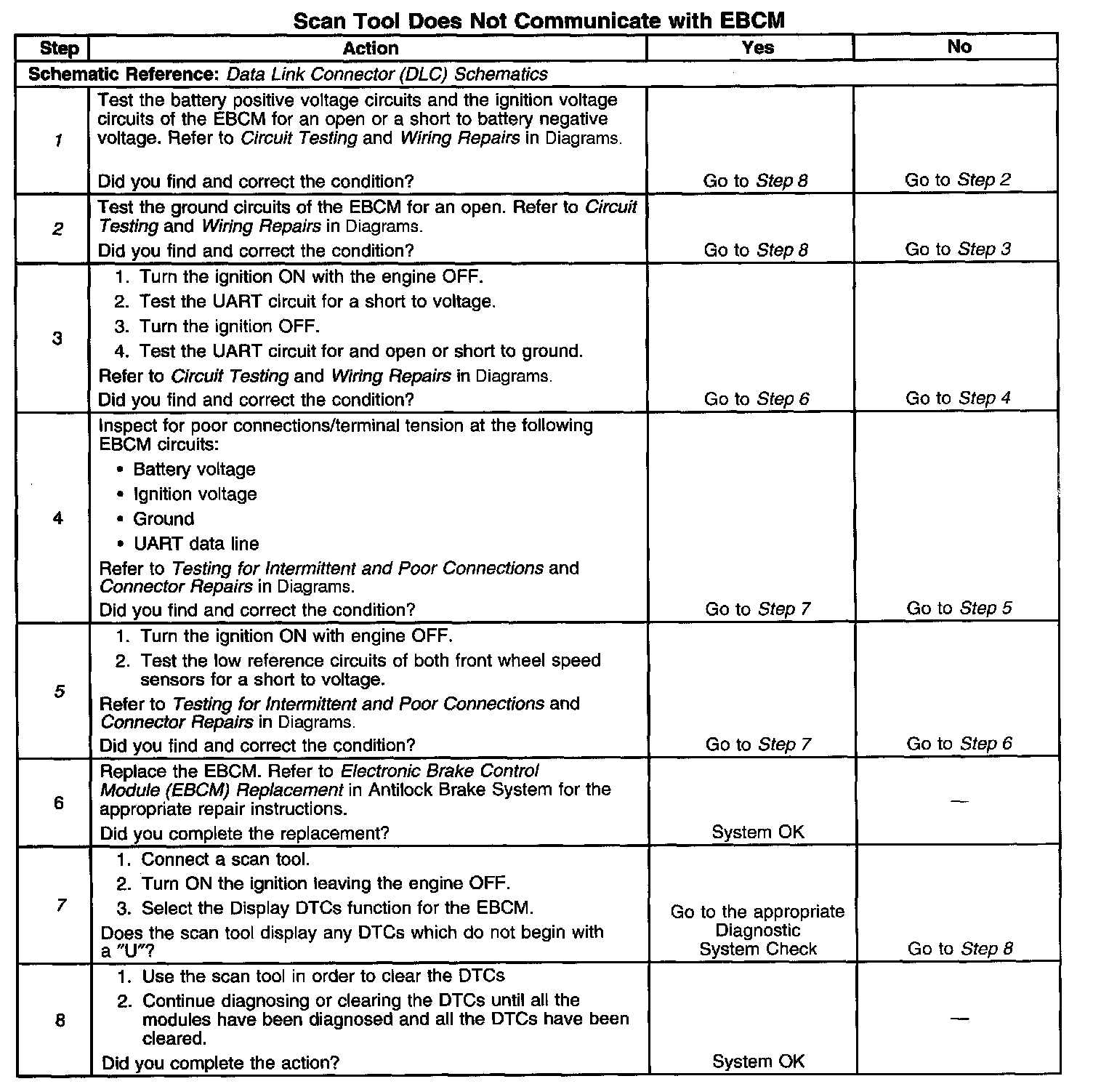 5. The EBCM which was not communicating may have detected a short to voltage on one or both of the front low reference circuits of the wheel speed sensors. This step checks for a short to voltage in these low reference circuits in the front wheel speed sensors.