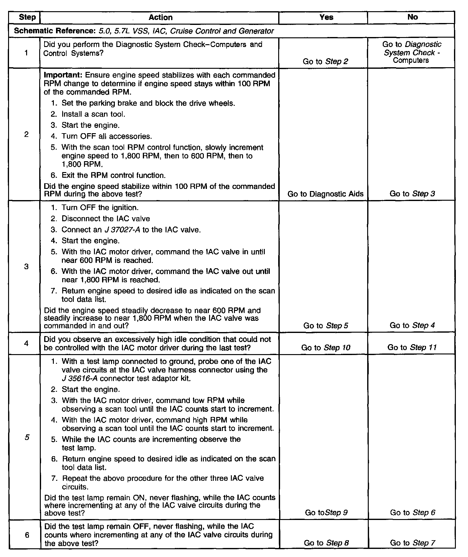 ^ A high or unstable idle condition could be caused by a non-IAC system problem that cannot be overcome by the IAC valve. refer to Symptoms - Computers and Control Systems. Standard Model (Non-Alternative Fuels)