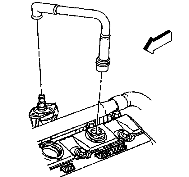 Removal Procedure1. Disconnect the Positive Crankcase Ventilation (PVC) valve hose assembly from the intake manifold.