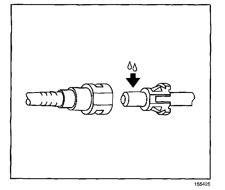 ^ Always apply a few drops of clean engine oil to the male pipe ends before connecting the fuel pipe fittings in order to reduce the risk of fire and personal injury. This will ensure proper reconnection and prevent a possible fuel leak. During normal operation, the O-rings located in the female connector will swell and may prevent proper reconnection if not lubricated.