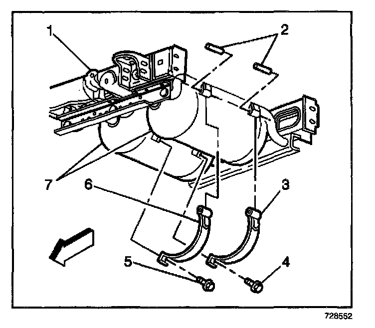 10. Remove the CNG fuel tank from the vehicle. Refer to Fuel Tank Replacement (Front) or Fuel Tank Replacement (Rear).