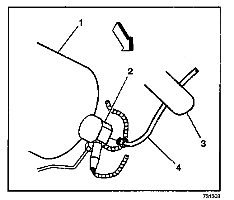 6. Connect the fuel outlet line (4) to the high pressure lock-off (2) using new O-rings. Lubricate the O-rings with petroleum jelly or equivalent.