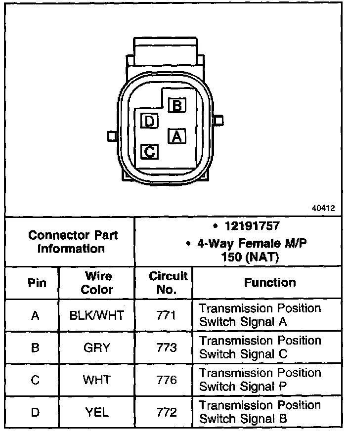 Transmission Range Switch Connector, Wiring Harness Side