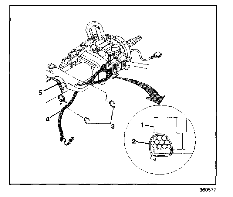 3. Remove the wire harness assembly (4) from the wire harness strap (5).