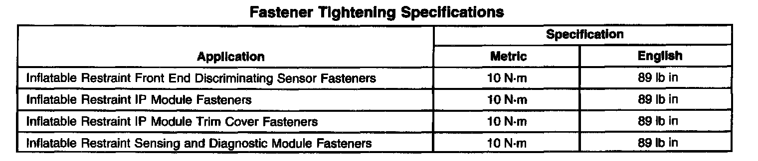 Fastener Tightening Specifications:
