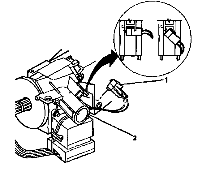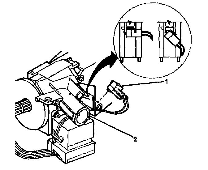 4. Slide the 2 connectors (2) of the turn signal and multifunction switch assembly into the bulkhead connector (1).