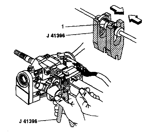 16.3. Unlock the adjuster ring (1) on the park lock cable assembly with J 41396.