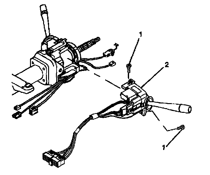 6. Remove the 2 pan head tapping screws (1) from the turn signal and multifunction switch assembly (2).