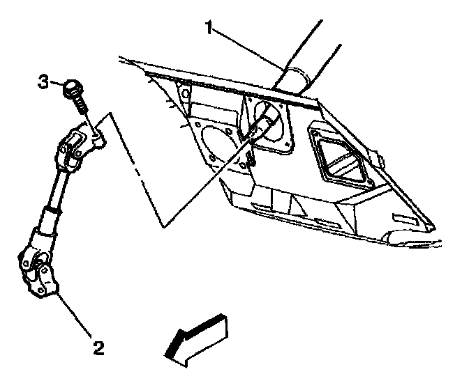 5. Install the intermediate shaft retaining bolt (3) to the steering column (1).