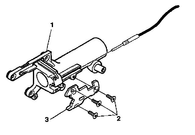 - Press the locking tab on the end of the park lock cable assembly (1) into the slot in the electronic lock module assembly.