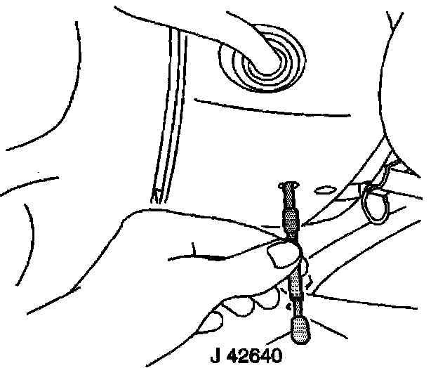 1. Install the J 42640 in the steering column lower access hole.
