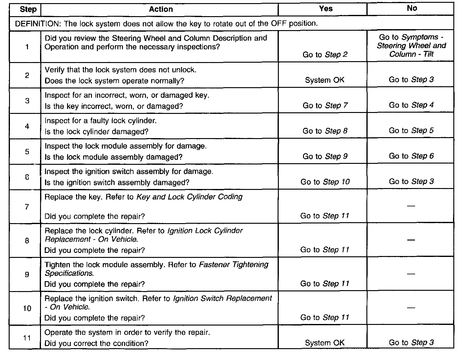 Lock System Does Not Unlock - Tilt Column