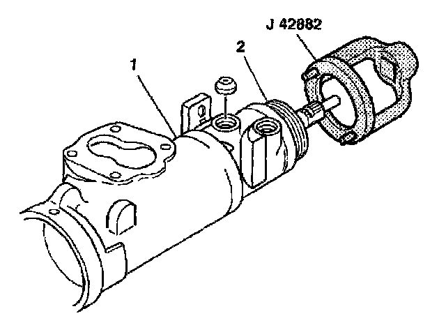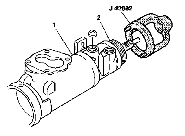 4. Connect the adjuster nut assembly (2) to the steering gear housing (1) using J 42882.